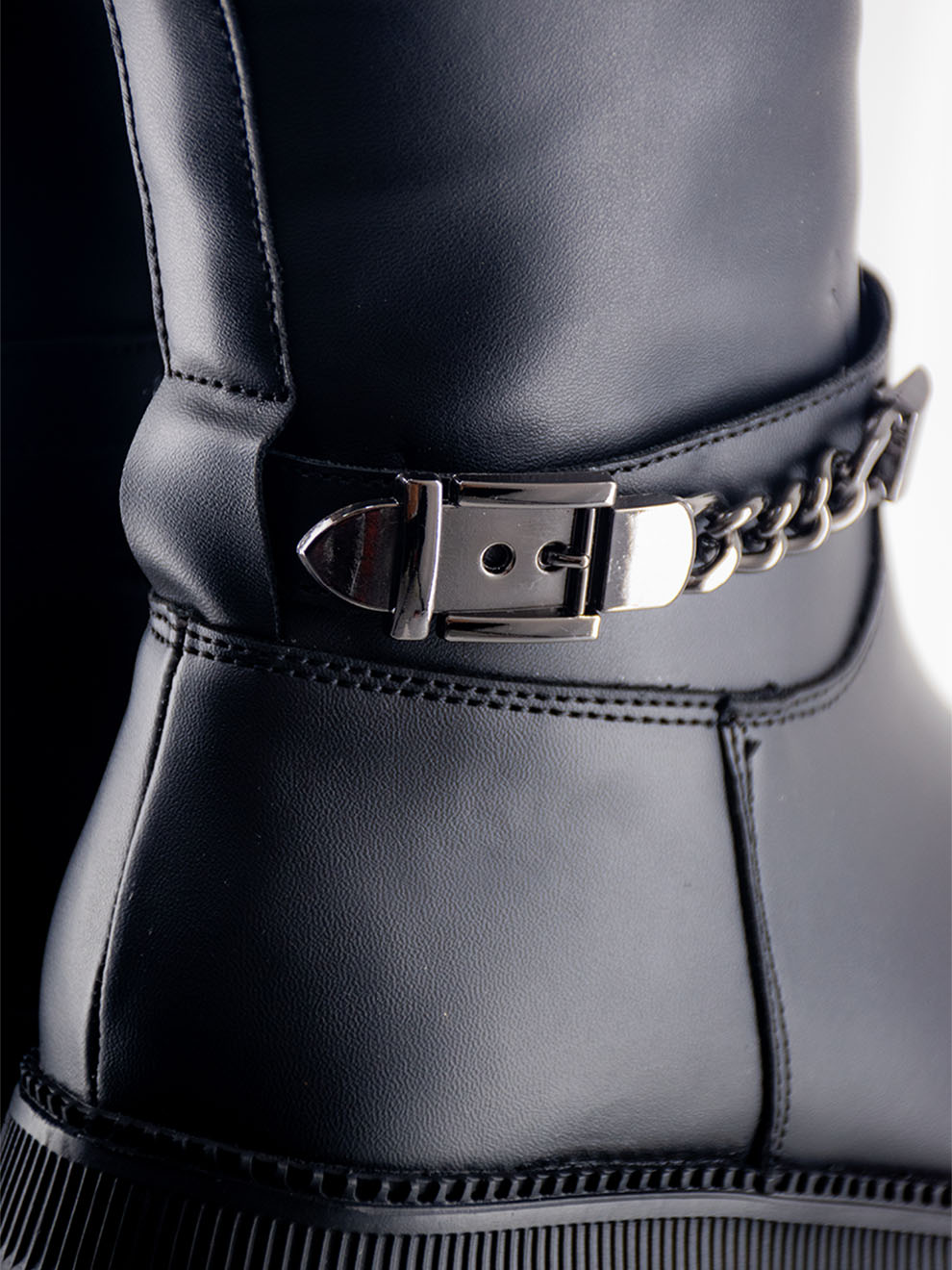 Diseñadas para darle actitud a tu estilo. Su acabado en materiales a base de poliuretano, totalmente ecológicos y veganos, la correa con herraje metálico y la suela chunky antideslizante se combinan para ofrecerte comodidad, estabilidad y un look moderno que destaca. Ideales para usar todo el día y elevar tus outfits sin esfuerzo.