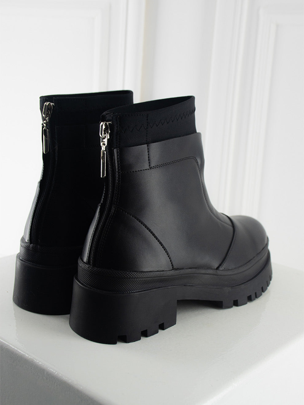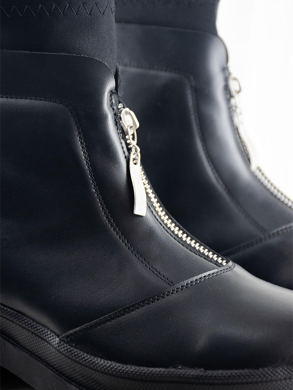 Un diseño moderno con textura mate para un look sofisticado y actual. Su cremallera frontal facilita el calce, mientras la suela chunky ofrece agarre y comodidad todo el día. Perfectos para elevar tus outfits con un toque atrevido y femenino.
