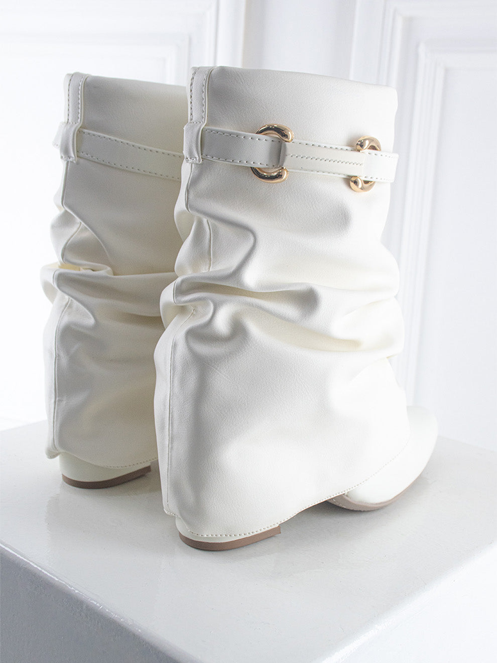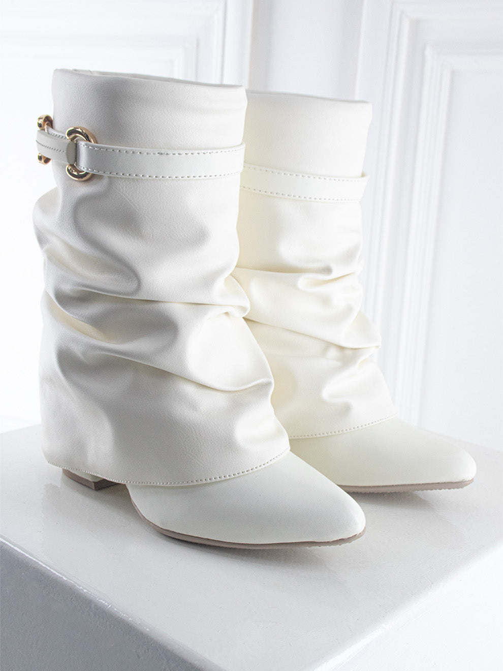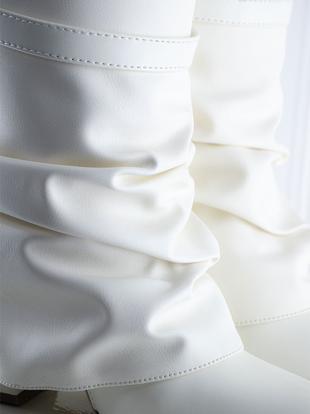 Iris combina una caña media tipo osaca con textura corrugada y una hebilla dorada central que eleva el diseño con un toque sofisticado. Su acabado mate en negro y horma puntuda estilizan la silueta, mientras el tacón aporta altura con elegancia. Un botín moderno, femenino y perfecto para un look juvenil y distinguido.