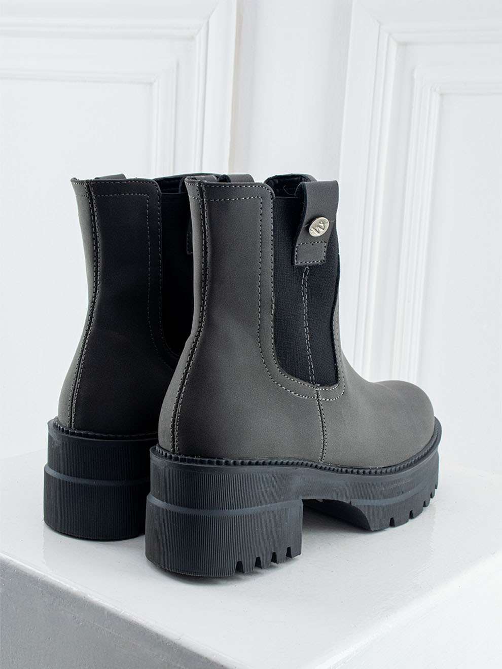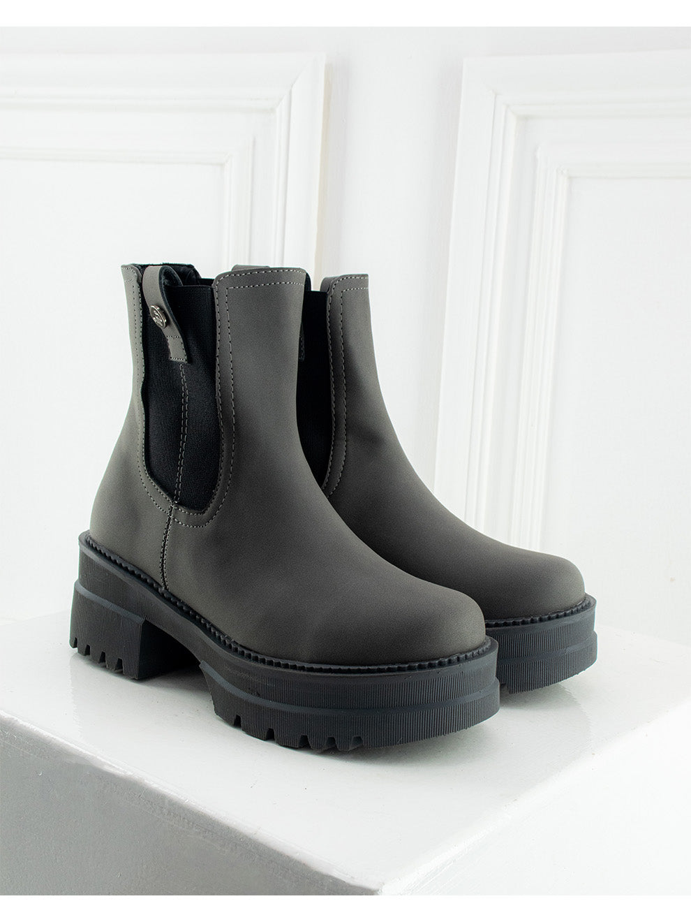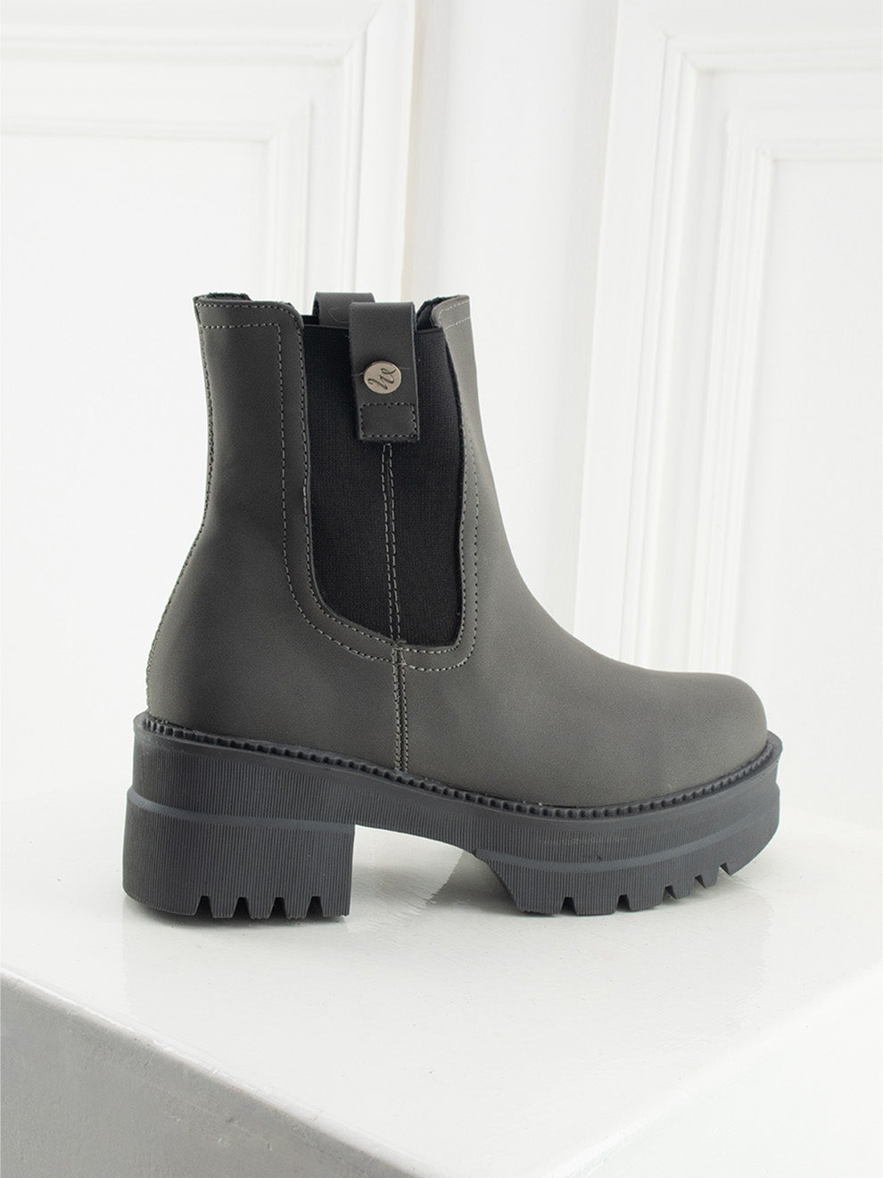 Loreta combina un acabado mate en negro con caña media y resorte lateral para un ajuste cómodo y práctico. Su botón plateado decorativo aporta un toque moderno y sofisticado, mientras la suela gruesa liviana y la horma redonda aseguran comodidad en cada paso. Perfecta para un estilo juvenil, versátil y elegante.