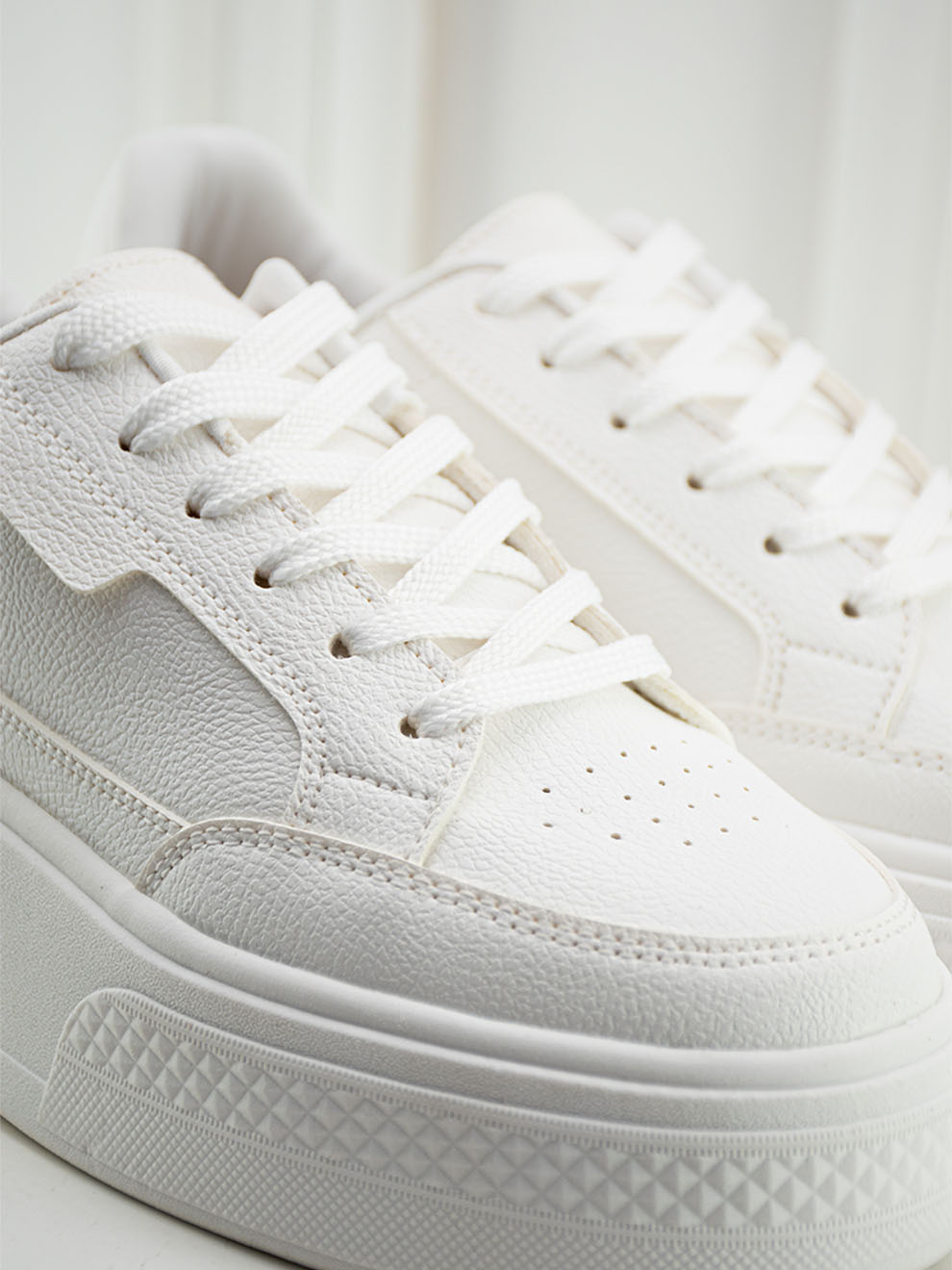 Tenis en textil blanco de diseño clásico que combina versatilidad y estilo en cada paso. Su suela gruesa y liviana aporta comodidad sin peso, mientras la horma redonda, el forro suave y la plantilla confort garantizan una experiencia ultra cómoda para usar todo el día.