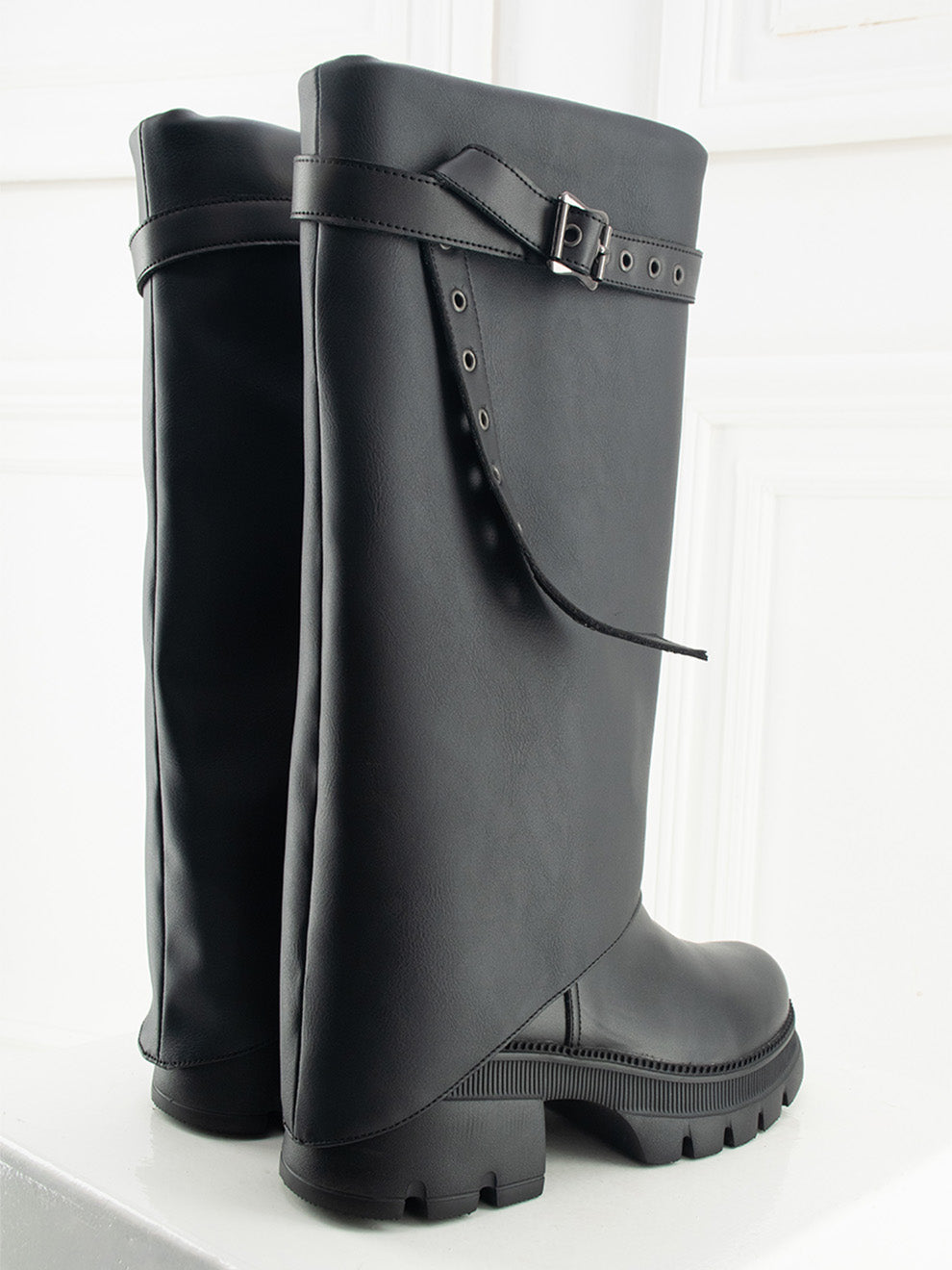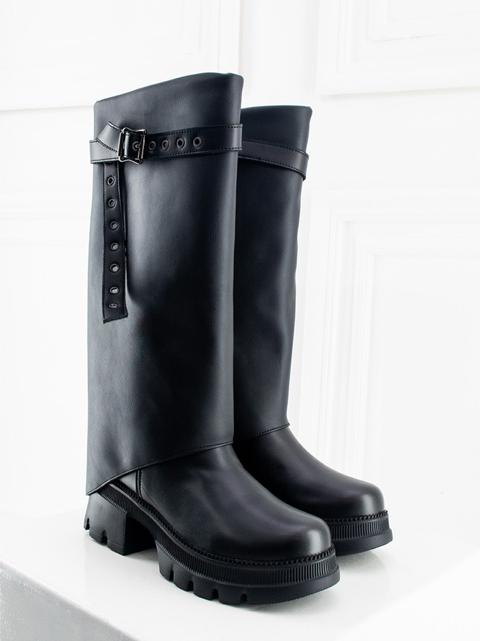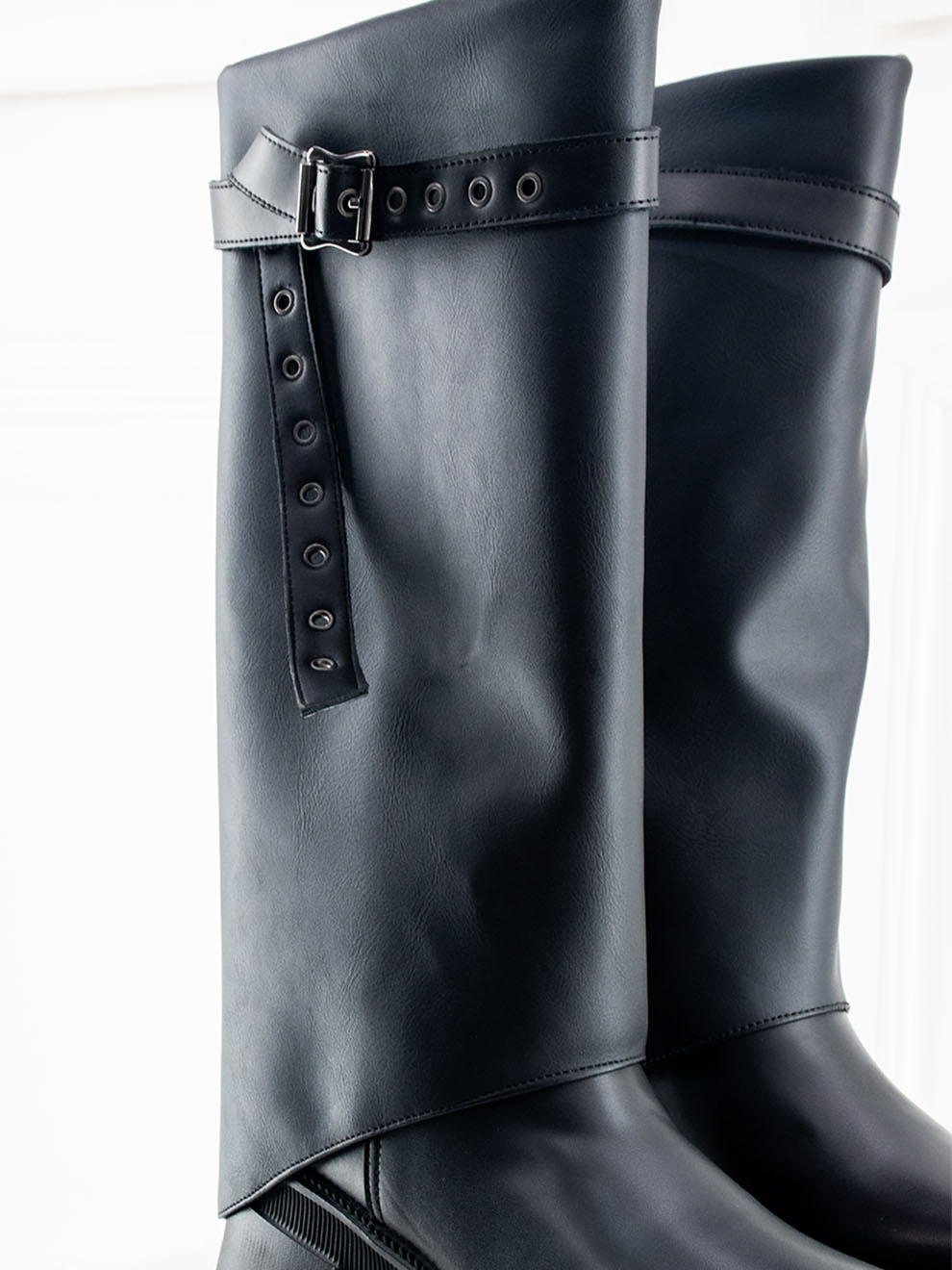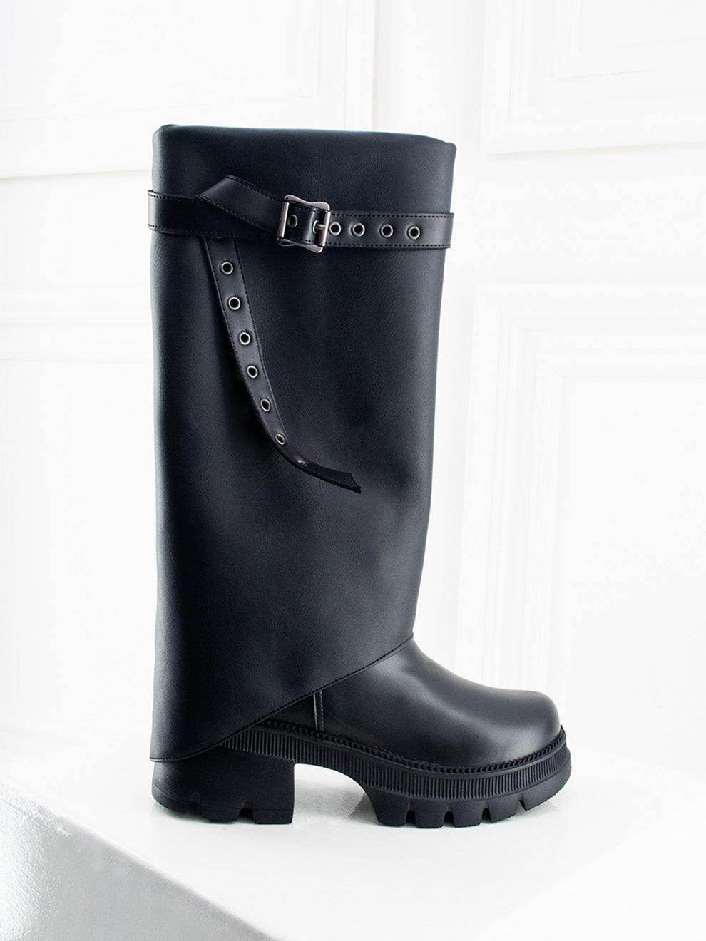 Perla destaca por su acabado mate en negro y una caña larga que estiliza cualquier look. Su capa removible con hebilla lateral permite transformar el estilo según la ocasión, ofreciendo dos diseños en uno. La suela gruesa y liviana brinda comodidad en cada paso, mientras la cremallera interna facilita el calce para un uso práctico y sofisticado.