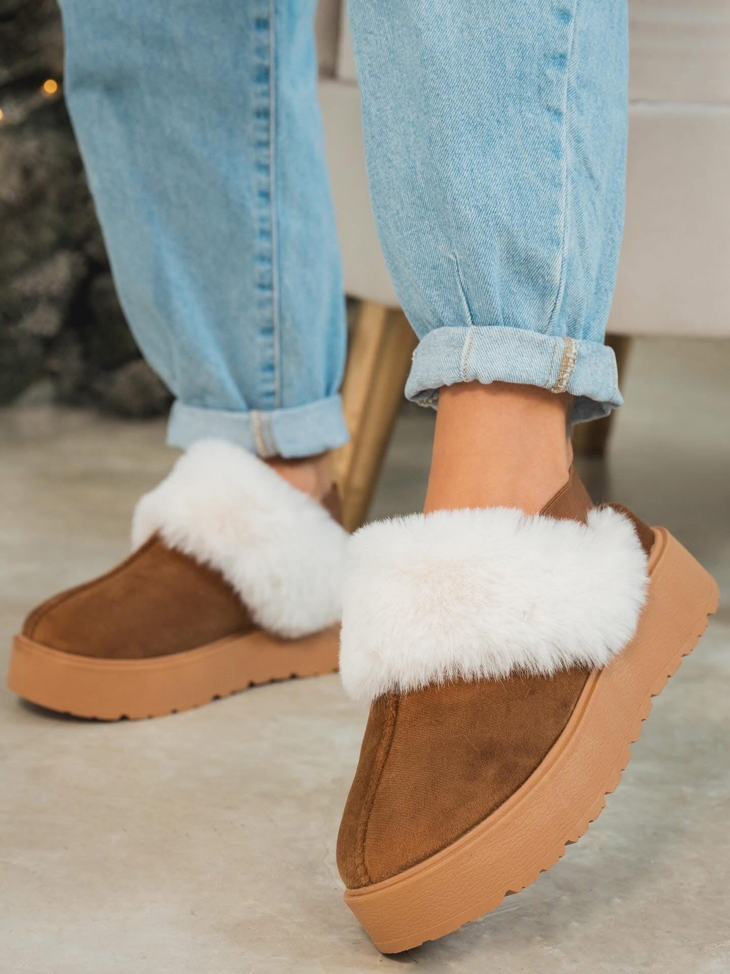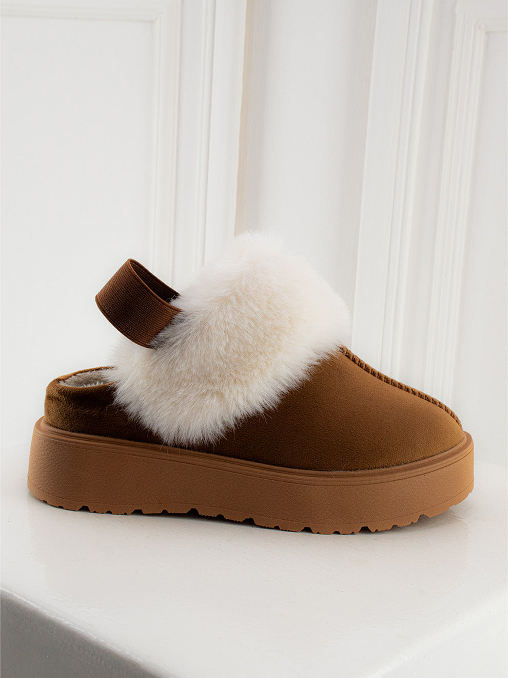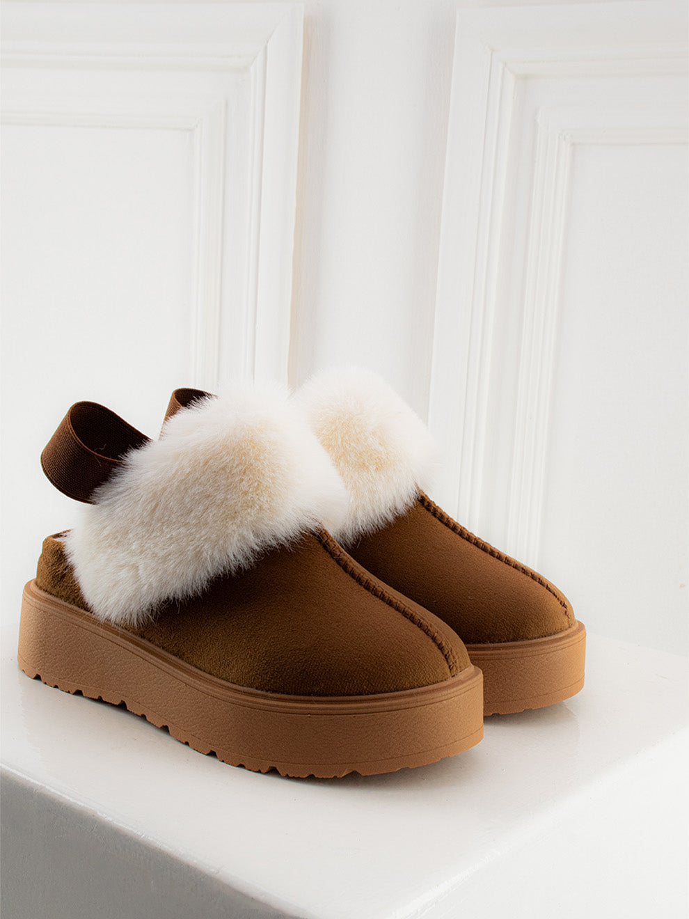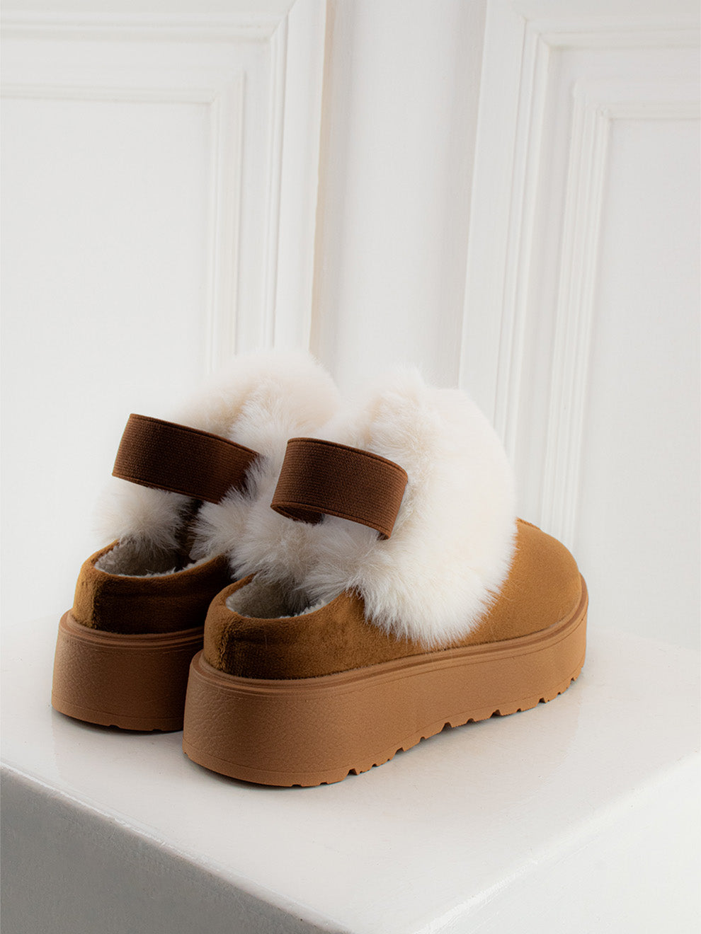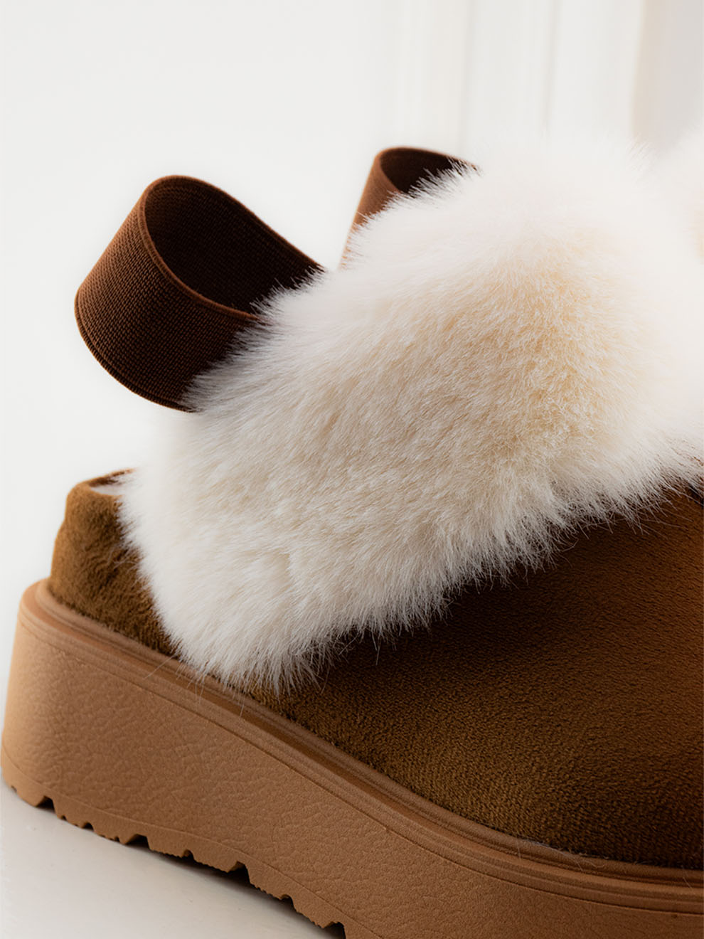 Abrígate con estilo: un zapato de peluche suave, tipo sueco y detalle acolchado en la parte superior que abraza el pie. Su suela gruesa y ultraliviana aporta comodidad todo el día, mientras la horma redonda y el resorte en el talón garantizan un ajuste flexible y perfecto para tu rutina.