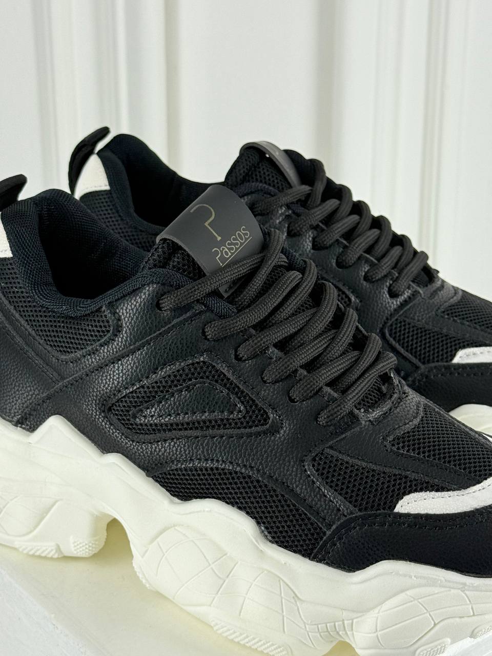 Lleva tu estilo al siguiente nivel con estos tenis Chunky Black & White, la mezcla perfecta entre diseño futurista y comodidad urbana. Su silueta robusta destaca por una suela gruesa con detalles geométricos que te brindan altura y estabilidad, mientras que su construcción en malla transpirable y cuero sintético garantiza frescura y durabilidad. Es el calzado ideal para quienes buscan un look audaz, versátil y totalmente en tendencia que combina con cualquier outfit de diario.